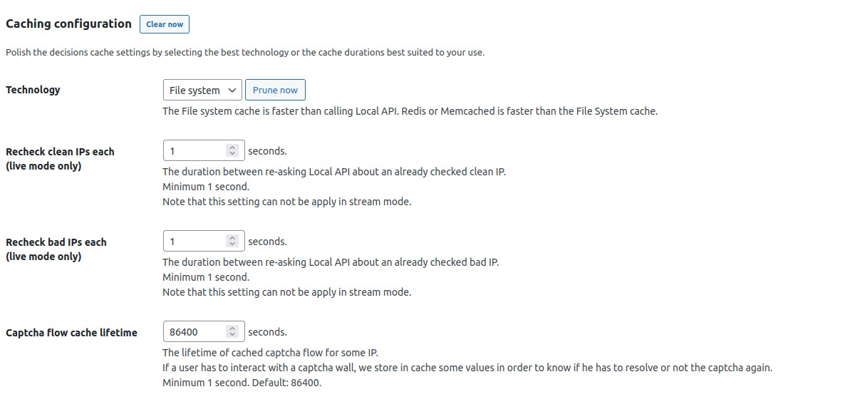 • Cache files of the File system cache are created in the wp-content/uploads/crowdsec/cache folder
